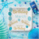 Joyeux anniversaire de mars anniversaires ! Célébrez les fêtes de groupe avec style et organisation, du décor aux faveurs de la fête. Cette conception est disponible sur les articles de papeterie. Vous pouvez également mettre la conception sur d'autres éléments si vous souhaitez l'utiliser sur quelque chose d'autre, assurez-vous simplement de vérifier vos personnalisations et tout est dimensionné et ajusté correctement. Faites une grande fête.
