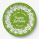 Assiettes En Carton Joyeux anniversaire motif vert et blanc
