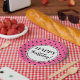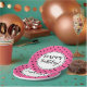 Assiettes En Carton Joyeux Anniversaire rose blanc points noirs