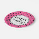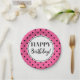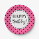 Joyeuses assiettes de fête d'anniversaire en motif pois noir rose chaud.