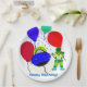 Thème spatial mignon avec le robot alien Captain Zacky et Zippie Spacship personnages de dessins animés, avec des ballons volants colorés rouge, bleu, vert, jaune. Capitaine Zacky est un joyeux robot vert souriant et brandissant son bonjour à la main, avec une combinaison jaune vert clair bleu et des bottes d'espace avec l'apparence de boutons lumineux 3D, avec son ami Zippie le vaisseau spatial un vaisseau bleu vert avec l'apparence de lumières 3D, yeux bleus, sourire heureux, poutres jaunes qui s'envolent dans la galaxie. Plats d'anniversaire amusants pour tout enfant qui aime les robots, les vaisseaux spatiaux, les aliens et l'exploration de la galaxie. Personnages de dessins animés d'art graphique d'origine © 2014 TamiraZDesigns.