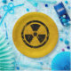 Avertissement de radiation. Symbole radioactif désinfecté sur une surface métallique de faux grunge - corrodé. Vous pouvez déplacer le symbole radioactif à une position que vous souhaitez ou ajouter du texte en cliquant simplement sur le bouton Modifier. Personnalisez-vous ou faites un grand cadeau.