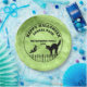 Personnalisez ce design Halloween Holiday avec un arrière - plan grunge vert citron, typographie noire, "Happy Halloween", une clôture en fer de chat noir et une silhouette sorcière. Il y a des modèles de texte pour vous faciliter l'utilisation de vos propres mots pour remplacer "Parti", nom et année.
