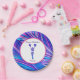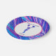Cheerleader "Joyeux Anniversaire" rose violet bleu abstrait plaques de papier design pour la parfaite fête de joie! Personnalisez cette assiette avec le nom de votre pom-pom girl !