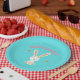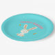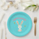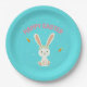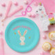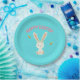 Assiettes En Carton Joyeux lapin blanc de Pâques sur bleu