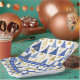 Si vous vous demandez quelles combinaisons de couleurs choisir pour votre décoration de Noël et vos fournitures d'enveloppement cadeau cette année, j'ai créé des collections de motifs de coordination pour rendre la vie un peu plus facile. Cette plaque en papier de Noël présente un design graphique moderne de minuscules arbres de Noël dans un motif de style géométrique de bleu profond et d'or avec un modèle pour ajouter votre texte. Recherchez ID1009 pour voir d'autres produits et motifs dans ce jeu de couleurs.