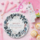 Ces magnifiques plaques de papier de vacances comprennent des couronnes saintes aux baies rouges et des feuilles verts bleus entourant le texte "Joyeux Noël" et personnalisées avec votre nom. Idéal pour les fêtes et les dîners de vacances.