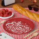 Ces assiettes de Noël rouges et blanches classiques souhaitent à chacun un "Joyeux Noël" dans un script amusant mais traditionnel avec des plats de saison élégants.