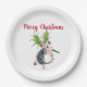 Les plaques de papier de saison des fêtes mignonnes présentent une aquarelle fantaisie illustration de hérisson marchant avec branche de saint et personnalisable texte "Joyeux Noël"