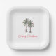 Plage Tropical Joyeux Noël plaques de papier fête, avec un palmier illustration et typographie de script. Avec le lettrage personnalisable, vous ajoutez vos propres informations. Un ajout festif à votre table de dîner de destination de vacances.