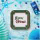 Une belle plaque en papier de Noël avec un style vintage "Joyeux Noël" et une bordure en plastique vert de Noël aux accents saints. Idéal pour les tables de vacances ou les repas de salon de séjour.
