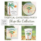 Ces assiettes en papier peint de style île sont ornées de palmiers dessinés à la main et décorés de lumières sur un arrière - plan aquarelle. Ils disent Joyeux Noël mais vous pouvez changer les mots si vous le souhaitez. Parce que nous créons notre propre oeuvre, vous ne trouverez pas cette image exacte d'autres designers. Aquarelle originale © Michele Davies.