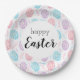 Les assiettes en papier parfaites pour votre fête de Pâques, avec les mots "Pâques heureuse" sur le devant avec un motif pastel floral motif oeuf de Pâques.