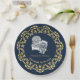 Plaques de papier mariage "Till Death US Do Part", dans les tons bleu marine, or et blanc, avec des crânes de mariée et de mariée inspirés de motifs de tatouage. Idéal pour ceux qui recherchent quelque chose de différent ou pour un mariage de thème Halloween, avec texte de script modifiable, facile à customiser avec les noms personnels.