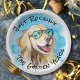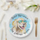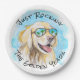 Plaques de papier de retraite amusantes avec un récupérateur d'or cool sur une plage tropicale. Design original réalisé à partir d'une de nos aquarelles peintes à la main.