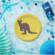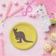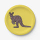 Australian kangaroo silhouette in tribal / ethnic mosaic pattern on yellow background