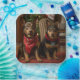 Assiettes En Carton Kelpie australienne près de la cheminée Noël