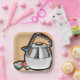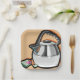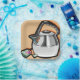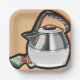 Une bouilloire brillante contre un arrière - plan orange. Ce design semble vraiment efficace sur ces Plaques de Papier