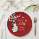 A cute kokeshi doll in a red white kimono under a white cherry blossom tree on a shimmering red background. With a custom birthday celebration text in an elegant font.