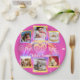 Les assiettes de fête d'anniversaire roses sont personnalisables. Le dire, "The Best Ever" avec un beau pastel à néon - comme le design avec des couleurs violet, jaune, rose et orange, un arc-en-ciel et coeur assortis, plus 6 modèles photo pour télécharger facilement les photos de vos 6 "best" sur.