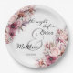 Cette élégante assiette en papier pour mariage bohème floral rose poudré peut être personnalisée avec vos noms et date de mariage.
