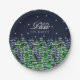Les plaques en papier de vacances ont une forêt d'arbres de Noël avec un ciel étoilé arrière - plan pour le texte "Paix sur Terre". Des serviettes et des tasses en papier assorties sont également disponibles pour coordonner votre fête.