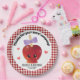 La plaque de papier Apple Of Our Eye - Maintenant, nous avons des informations secrètes "in-cider" pour vous tous. Puissions-nous présenter ce design étonnant et très "a-peeling" de plaque de papier. Avec une sympathique petite pomme de bonbons. Doté d'une petite pomme de bonbons conviviale.Dans l'arrière - plan, un motif à damiers lumineux, inspiré d'une nappe de pique-nique.N'oubliez pas de passer par notre magasin pour toutes vos fournitures de fête et invitations assorties.