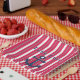 Assiettes En Carton Lac ou plage personnalisé Rouge blanc rayé