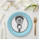 Plaques de soirée de crosse ou d'événement de jour de jeu mettant en vedette des bâtons de laxisme sur l'arrière - plan bleu.