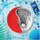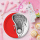 assiettes de cool lacrosse party avec bâton de lessive créatif et art de la balle sur l'arrière - plan rouge pour une soirée de lacrosse ou d'équipe.