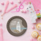La fête d'anniversaire plaque comporter une illustration de bouteille de lait et de biscuits rayés.
