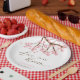 Fête de mariage sous les fleurs de cerisier personnalisée avec des assiettes en papier florales de printemps, Love is in Bloom, conçue et illustrée par Kristine Lee www.kristineleedesigns.com