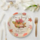 L'amour est en train de préparer la douche de mariage d'automne automne modèle de plaques de papier personnalisées monogrammées, feuilles d'érable citrouille aquarelle cannelle épices tasse de thé, fond marron pour décor de table personnalisé pour douche de mariage sur le thème de l'automne automne plaques de papier personnalisées avec nom.