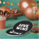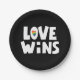 Ce design présente l'expression Love Wins avec un coeur arc-en-ciel coloré.