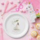 Élevez votre table de lancement de fiançailles avec ces assiettes d'inspiration rustique, présentant une mariée élégante à l'aquarelle entourée d'un tourbillon de fleurs sauvages. Pratiques et belles, elles sont le moyen idéal pour intégrer votre thème de fête romantique et amoureuse de la nature.