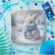 Un lapin blanc et moelleux portant une écharpe bleue se trouve dans un pays merveilleux d'hiver enneigé, entouré de plantes et d'arbres à feuillage persistant recouverts de gel. Peut être utilisé pour Noël.