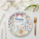 Célébrez Pâques dans le style avec ces plaques en papier magnifiquement conçues, parfait pour accueillir un brunch de Pâques et une chasse aux oeufs! Doté d'adorables lapins d'aquarelle entourés d'une délicate couronne de fleurs, ce design rayonne de charme et d'élégance.
