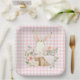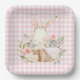 Plaque de papier rosée en houndstooth avec un lapin d'aquarelle douce dans un panier et est parfait pour votre baby shower. Les tons roses pastel sont doux et délicats. Le lapin lapin ajoute une douceur à cette assiette. Transférez ce motif à d'autres produits. Parfait pour votre journée spéciale.