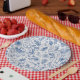Plates en papier motif pour lapins vintages bleus et fleurs de printemps