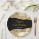 Cette plaque de fête d'anniversaire élégante et glamour présente des larmes de glamour de faux parties scintillant or sur un arrière - plan noir. Le texte combine écriture manuscrite et polices sans serif modernes pour un look élégant et sophistiqué.
