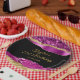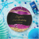 Cette plaque de fête d'anniversaire élégante et séduisante présente des larmes de glamour violet et or faux parties scintillant sur un arrière - plan noir. Le texte combine écriture manuscrite et polices sans serif modernes pour un look élégant et sophistiqué.