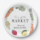 Cette assiette en papier de l'arrosage de mariage de marché aux légumes "Elle est hors du marché" présente un fond blanc avec des légumes et des fruits en aquarelle. Personnalisez selon vos besoins. Vous pouvez trouver des produits assortis dans ma boutique.