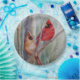 "La Présence pacifique" présente une paire d'oiseaux du Cardinal du Nord, mâle et femelle, perchée sur un membre de bouleau. Les rayons de soleil se filtrent d'en haut pour donner une belle lueur aux oiseaux rouges. Tout est calme et tranquille, au fur et à mesure que se déroule cette nouvelle journée.