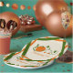 J'aime quand il est temps de travailler avec les couleurs d'automne! Ces assiettes présentent un grand citrouille orange et des vignes vertes avec des feuilles au centre, et votre texte est ci-dessous. Le design est encadré de rayures agréables orange et vert, comme un treillis sur une tarte. Profitez de votre événement !