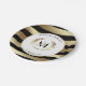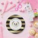 Laurel Monogrammed Black and Gold Graduation Party Plaques - Matching Cups - Napkins and Invitations too - Classic and Clean - une simple couronne de laurier d'or joint les monogrammes du premier et du nom de famille - une lettre au-dessus de l'autre - une lettre d'or, l'autre noir - pur texte classique - Tout est modifiable - en fait le noir qui montre derrière les bandes d'or est une couleur arrière - plan changé si vous voulez une couleur de votre choix - Utilisez le lien Personnaliser et vous verrez [Afficher le sélecteur de couleurs] pour des choix de couleurs plus arrière - plans. Toute couleur que vous choisissez montrera entre les bandes dorées.