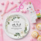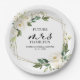 Assiette en papier pour douche de mariage florale blanche géométrique verdure