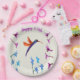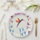 Plaques à papier avec un colibri volant librement entre les fleurs. Grand pour un anniversaire ou un anniversaire d'étape importante, le texte est facilement customisé pour votre occasion. Ces plats floraux de colibri ont été conçus utilisant une illustration de ma peinture en verre d'oiseau original. potier de ©Annabel