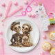 Une Assiette Gothique d'Halloween avec un Couple de Squelettes de Mariage