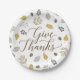 Ajoutez une certaine acclamation de vacances à votre dîner de thanksgiving avec ce plat rustique comportant le feuillage d'automne aux nuances de l'or, argent, et le brun et "donnent des mercis" dans une police inspirée par calligraphie élégante.