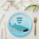 Ajoutez votre propre message à cette assiette amusante de soirées en papier avec une illustration de style dessin animé d'un requin baleine contre un arrière - plan à l'ombre bleue de l'océan. C'est parfait pour organiser une fête pour vos fans préférés de requins et autres créatures marines.